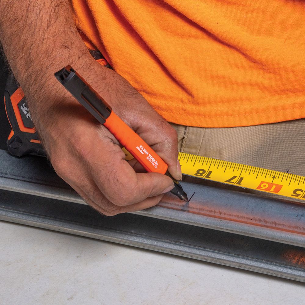 Klein Tools Skribes™ Fine Tip Black Permanent Markers are designed for tough jobsite conditions. With durable tips, they create vibrant, long-lasting lines for detailed marking and labelling. The professional-grade ink writes effortlessly on wet, dry, oily and abrasive surfaces, resisting clogging for smooth marking. The marker's 72-hour extended cap-off life prevents it from drying out quickly. The anti-roll triangular shape and built-in hard hat clip keep it easily accessible on the job.