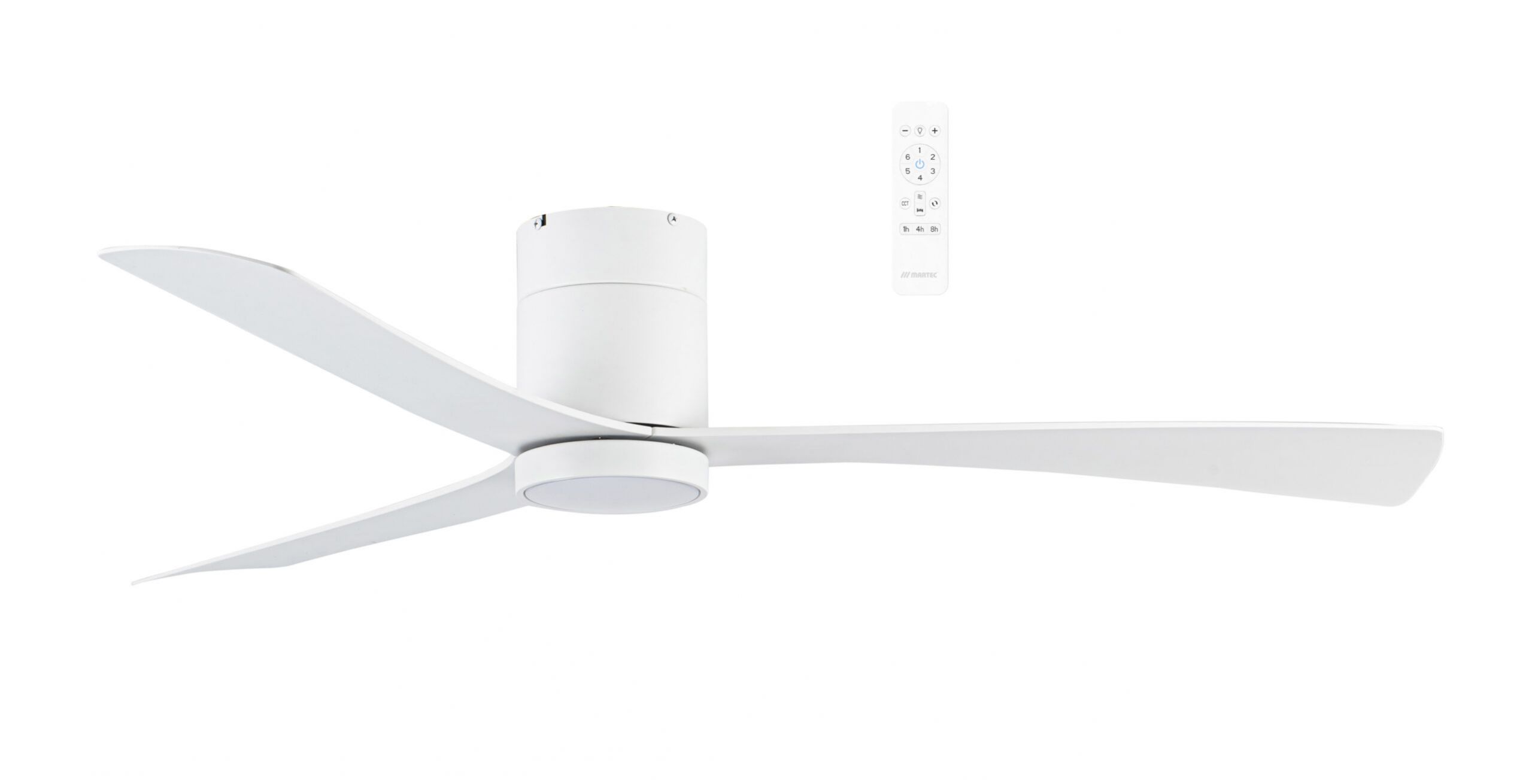 The fan features a minimalist design with a Matt White finish, blending seamlessly into modern home interiors.